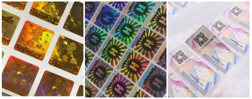 4. Holografik sahteciliğe karşı etiketler: Bu tür etiketler çok katmanlı yansıtıcı yüzey içerir, farklı açılardan görüntüyü ve değişim modelini gösterebilir, kopyalanması zordur ve görsel bir sahteciliğe karşı işaret olarak kullanılabilir.