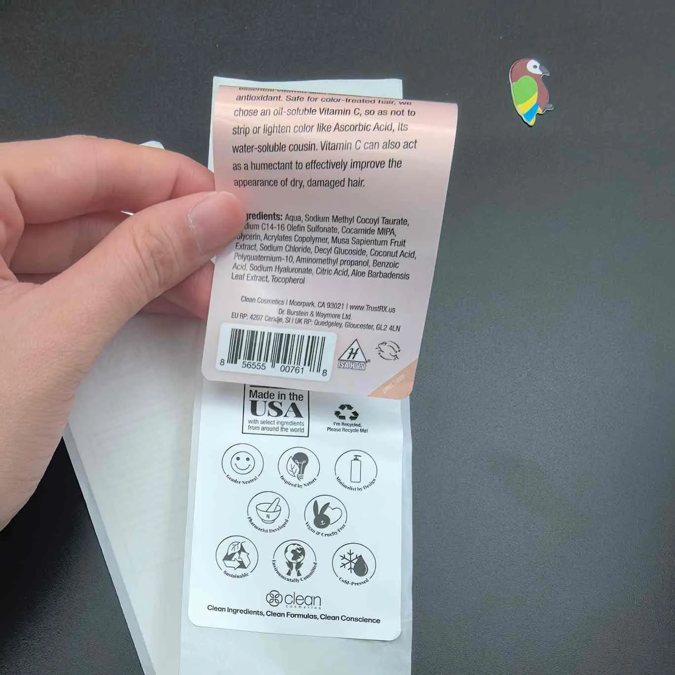 C: Kozmetikler için 2+ katmanlı bir etikettir. Etiket boyutunu genişletmeden iç katmandaki ekstra bilgileri ortaya çıkarmak için dış katmanı soyun.