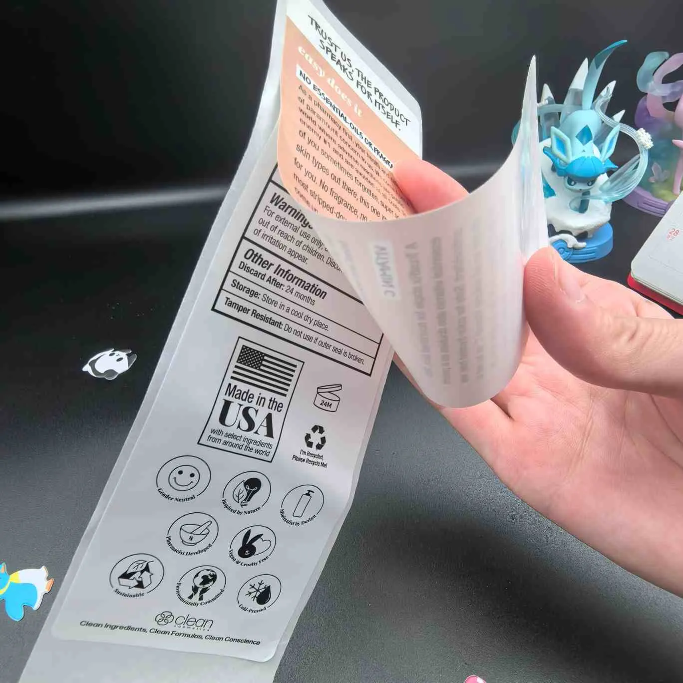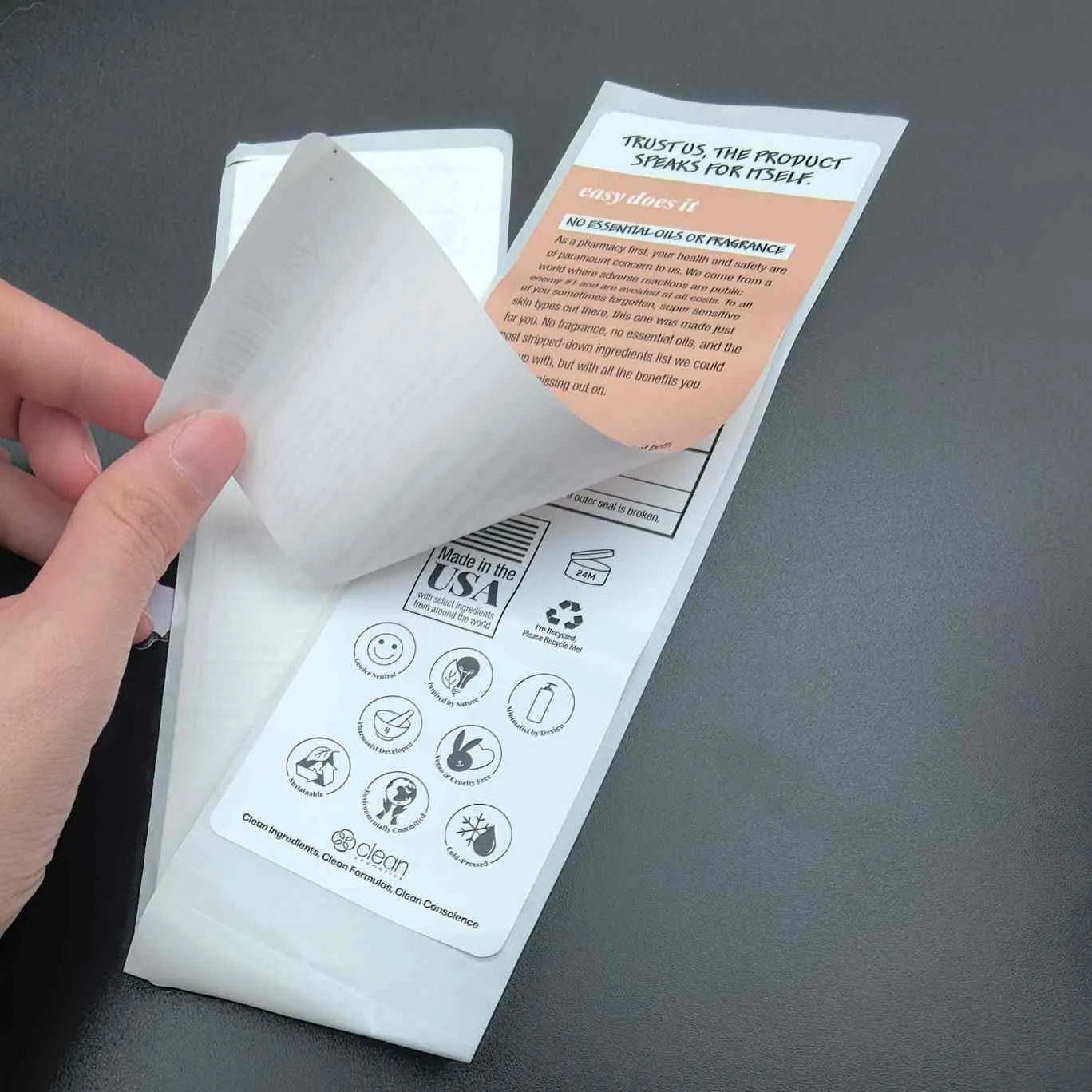 Etiketleri soyun ve okuyun:En temel tür, kozmetik etiketler için multiLayer olarak da adlandırılır. Üst katmanın soyulması kolaydır ve iç katman genişletilmiş bilgileri içerir. Genellikle yüz maskeleri, serumlar ve diğer küçük paketlenmiş ürünler için kullanılır.
