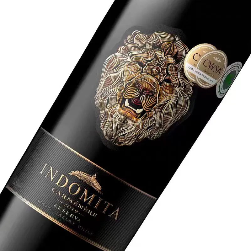Buşarap etiketikapsamlı altın folyo damgalama özelliğine sahiptir. Siyah arka plan altın çizgi desenleriyle eşleştirilmiş, metin ise altın ve beyazın birleşimini kullanıyor. Altının parlaklığı ve folyo damgalamanın parlaklığı, hafifçe yükseltilmiş desenler ve metinlerle birlikte vurgu ve net katmanlama yaratarak klasik ve zarif bir estetik kazandırır.